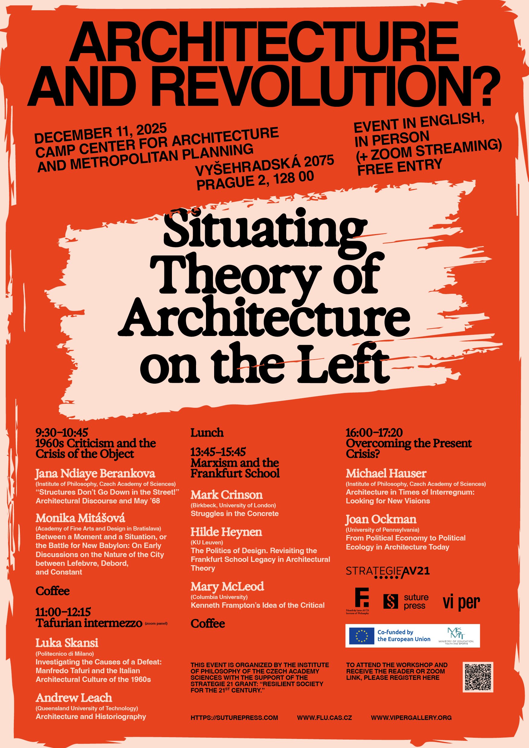 Since the protest movements of the 1960s, architectural theory has developed in close dialogue with continental philosophy and the social sciences. This workshop explores left-wing streams in architectural thought and asks which texts could help us think about the current crisis in architecture and urban planning. Distinguished architecture historians and theorists such as Mary McLeod, Joan Ockman, Mark Crinson, Hilde Heynen, Luka Skanski, Andrew Leach, Monika Mitášová, Michael Hauser and Jana Ndiaye Beránková will give talks on Henri Lefebvre, Manfredo Tafuri, Kenneth Frampton and the Frankfurt School.